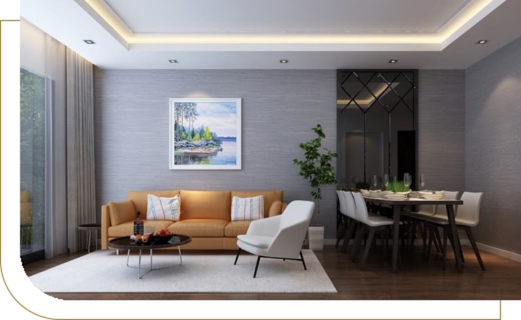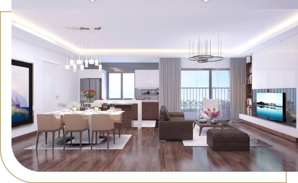 • Phòng khách + Phòng ăn + Bếp: 43.58m2